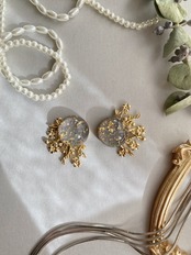 グレーレジンと草花パーツのピアス・イヤリング