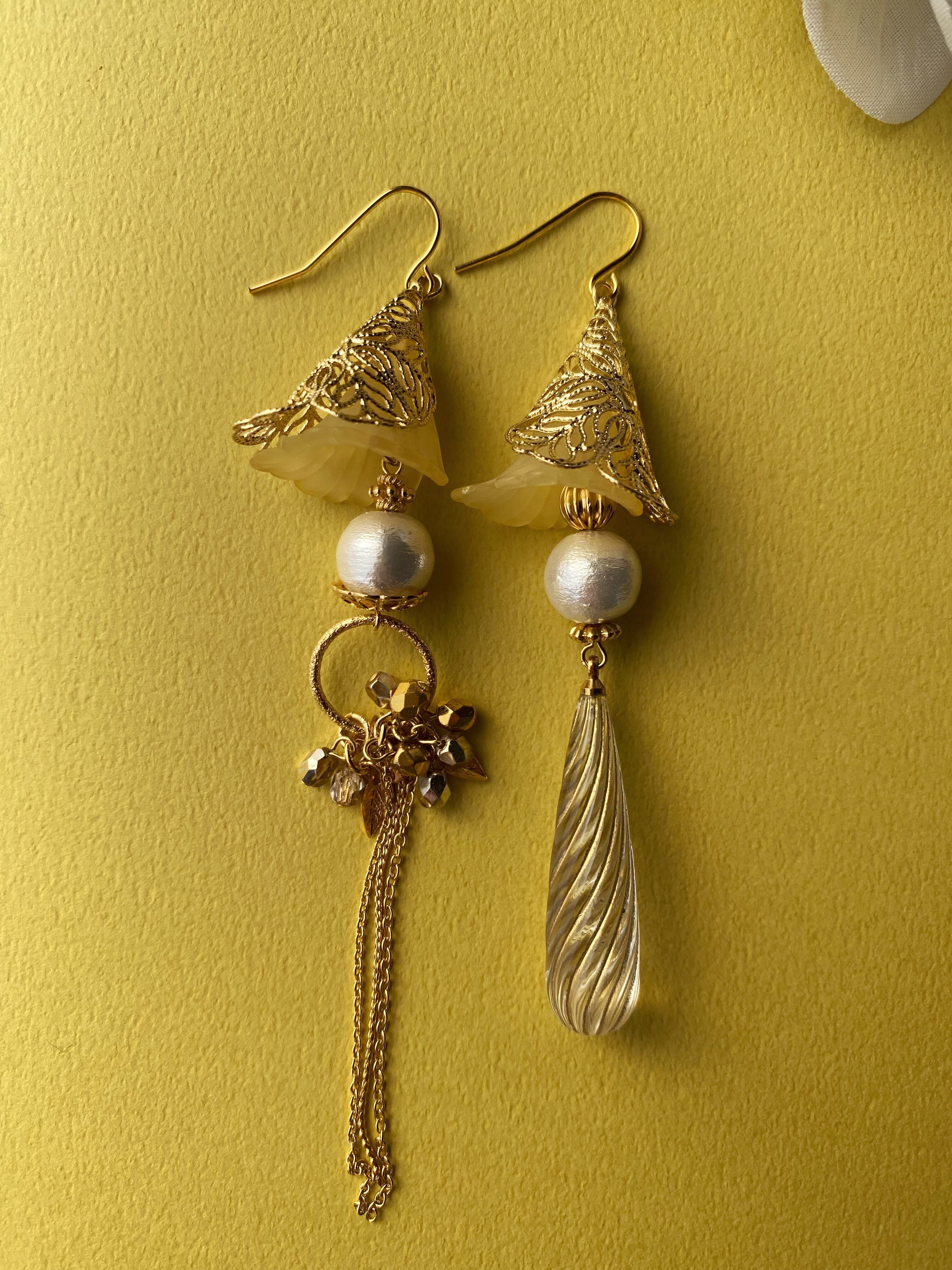 ★SALE★セール★2200円→1700円:ゴールドとイエローの花びらで包んだゆらゆらピアス・イヤリング