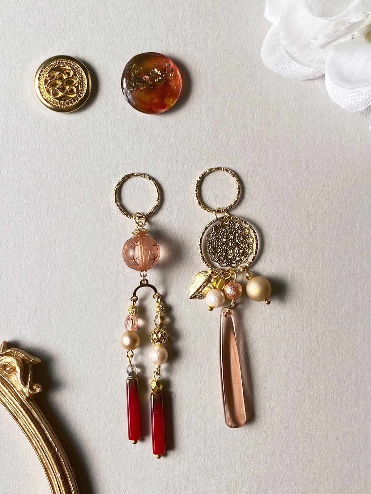【2way】オレンジレッドの天秤ピアス・イヤリング