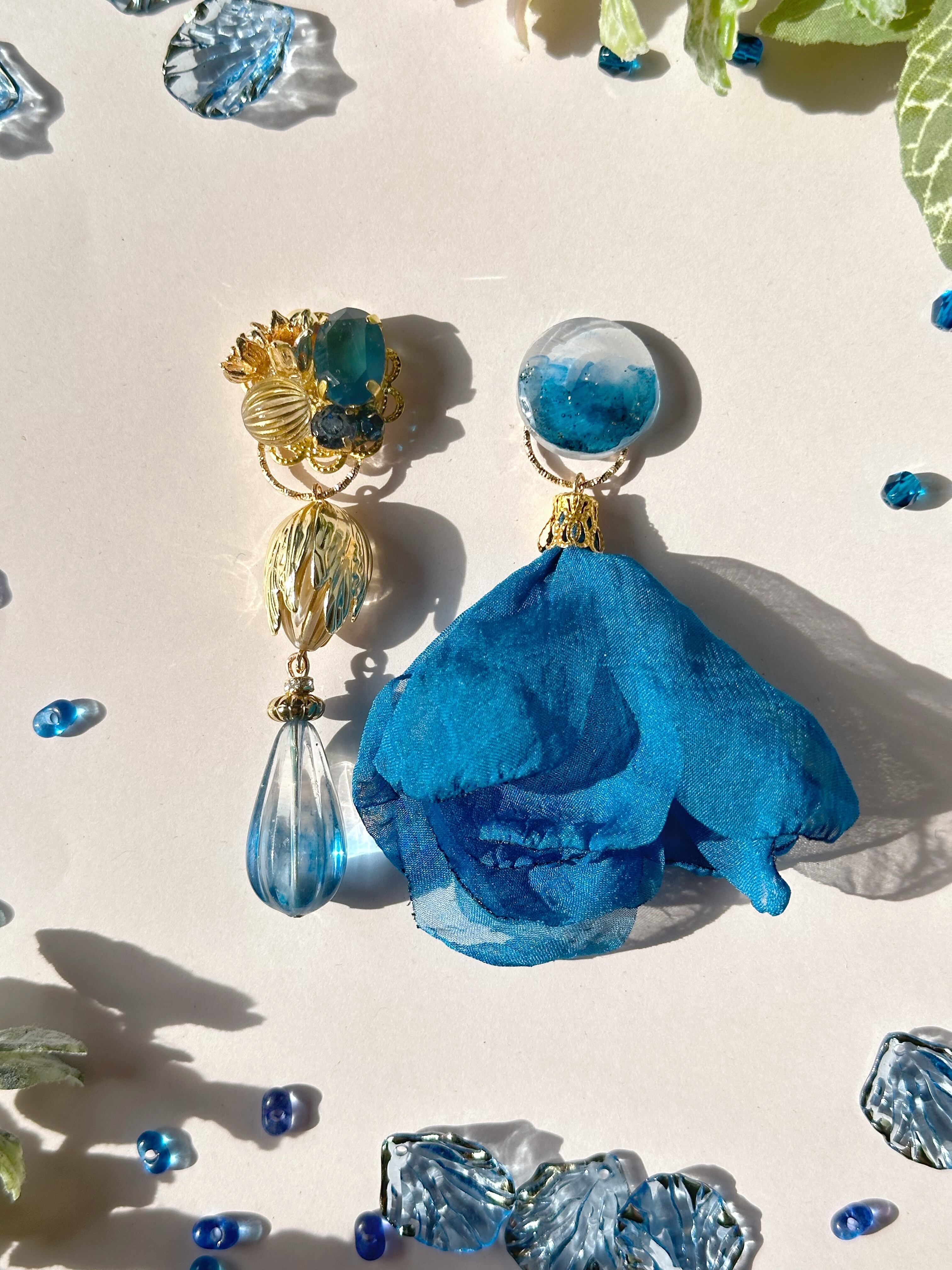 碧い海の力強いまでの美しさをアクセサリーに写し取りました。ピアス・イヤリングどちらでも対応可能です。