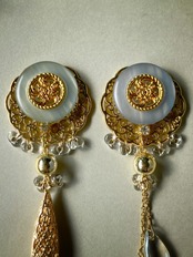 さらに、女性の頭部を覆う布についている宝石類は透かしパーツの下で瞬く小さなビーズで表しました。