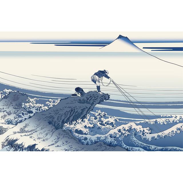 また、北斎といえば北斎ブルー。藍一色で刷られており、このグラデーションの表現で遠近や波を表現しています。