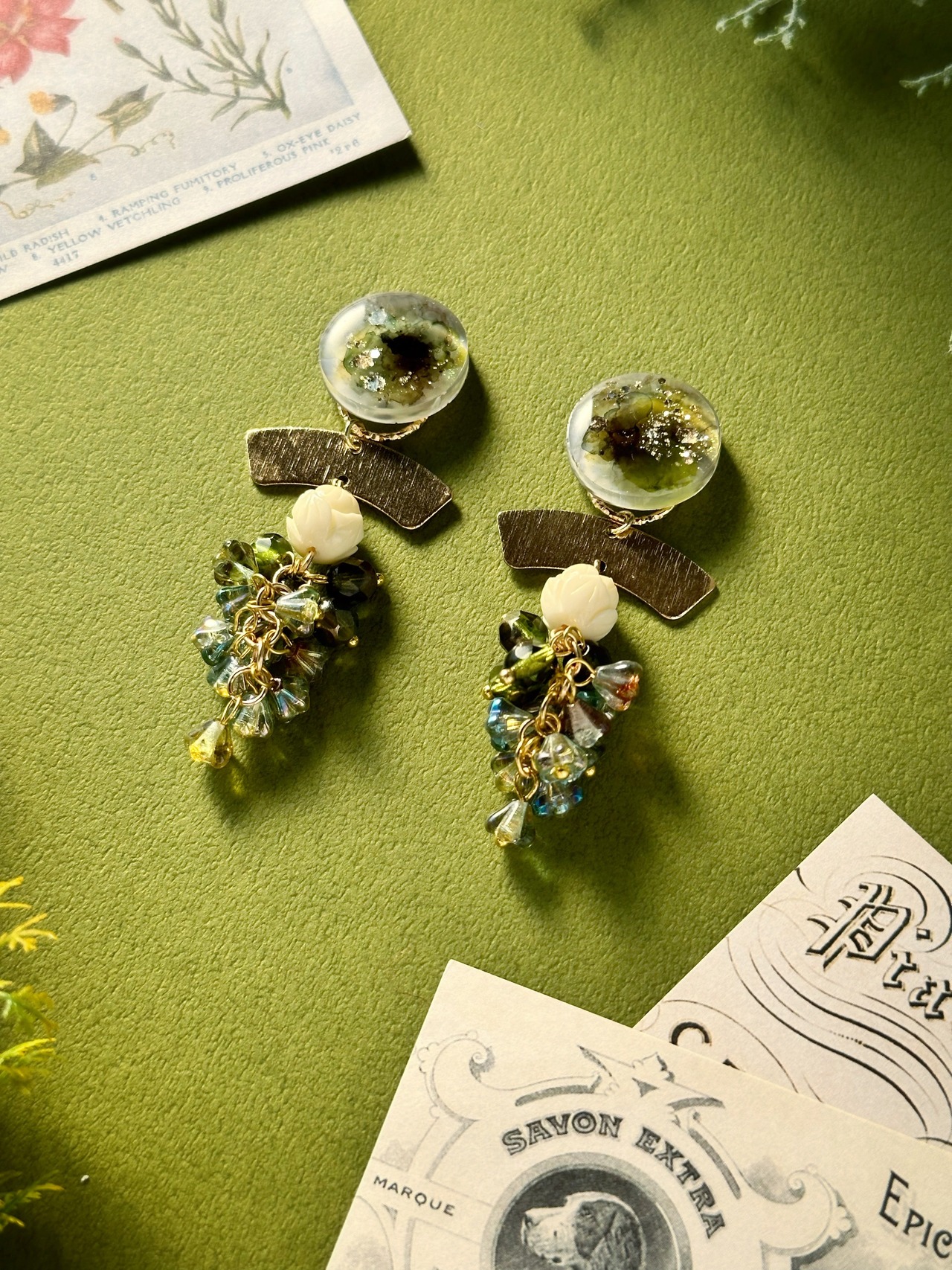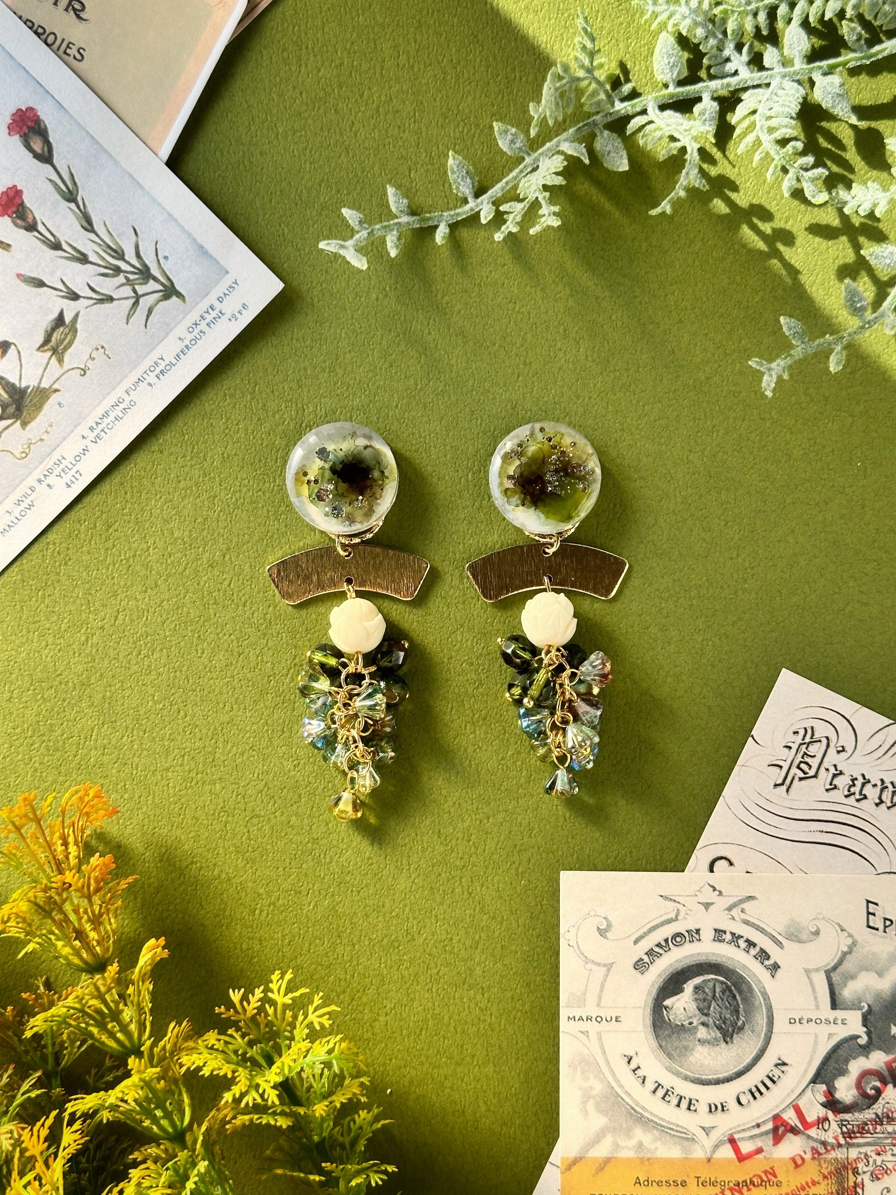 クロード・モネの絵画「睡蓮の池」をモチーフに作成したピアス・イヤリングです
