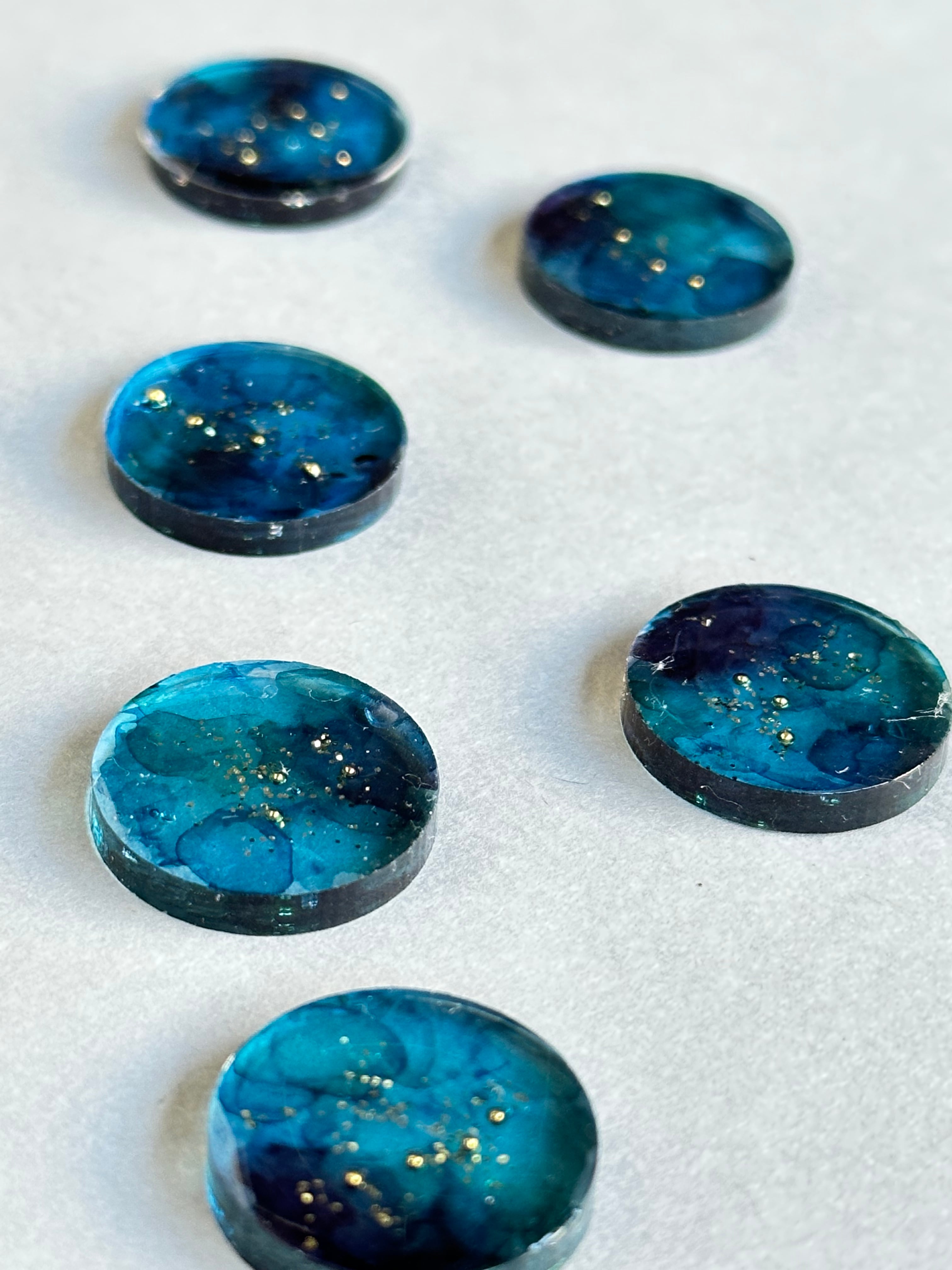 レジンでかたどったカボション部分にはその夜空と水面の光を再現しました。