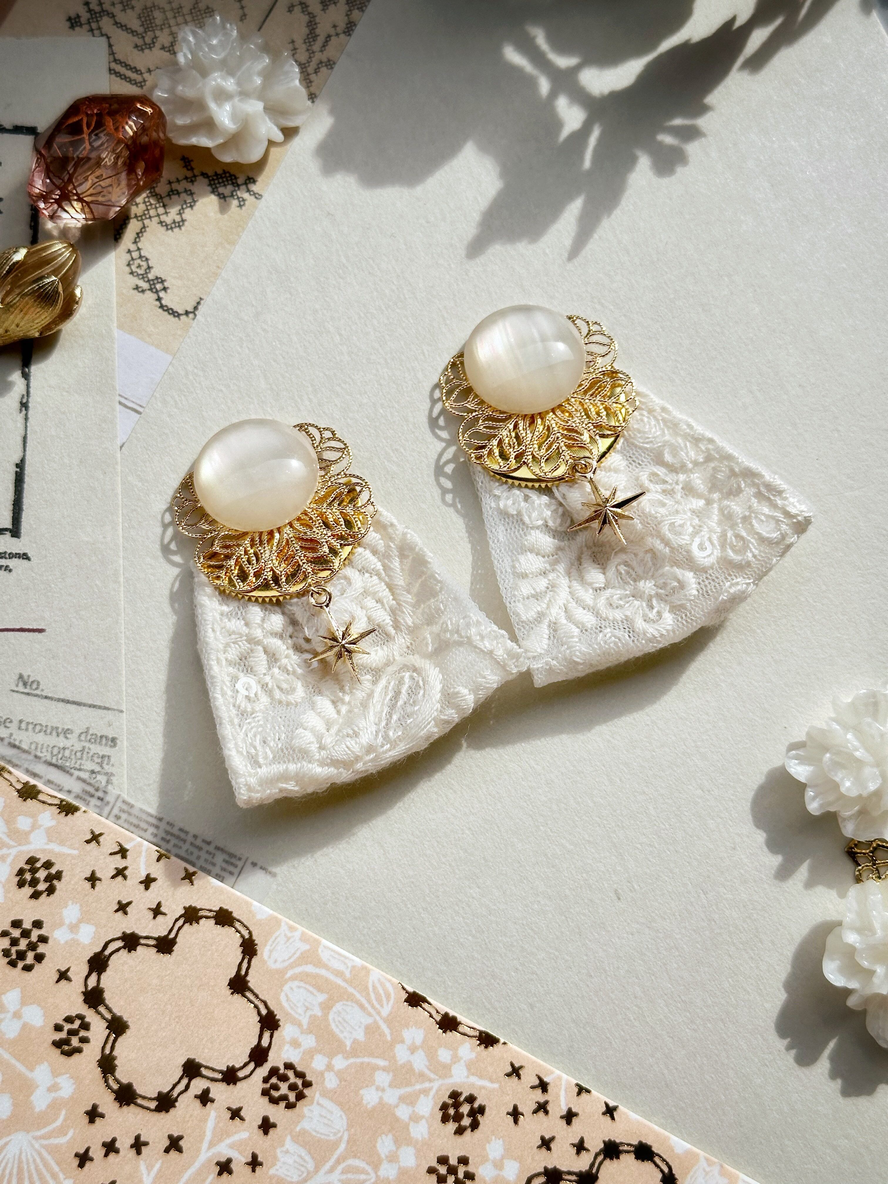 ※イヤリングの場合、金具の構造上、カボションの下にリングが見えやすくなるため金具を引っ掛けるリングはピアスのものより小さめでおつけします。