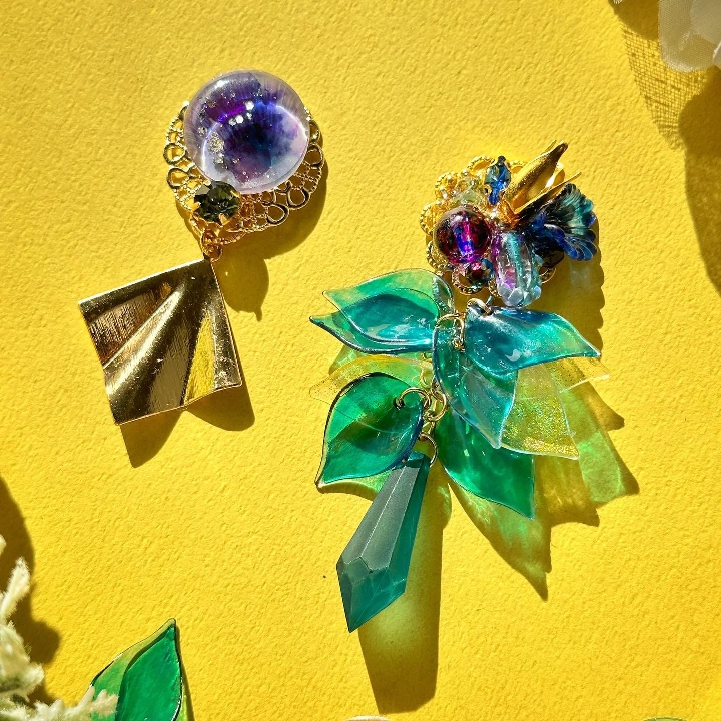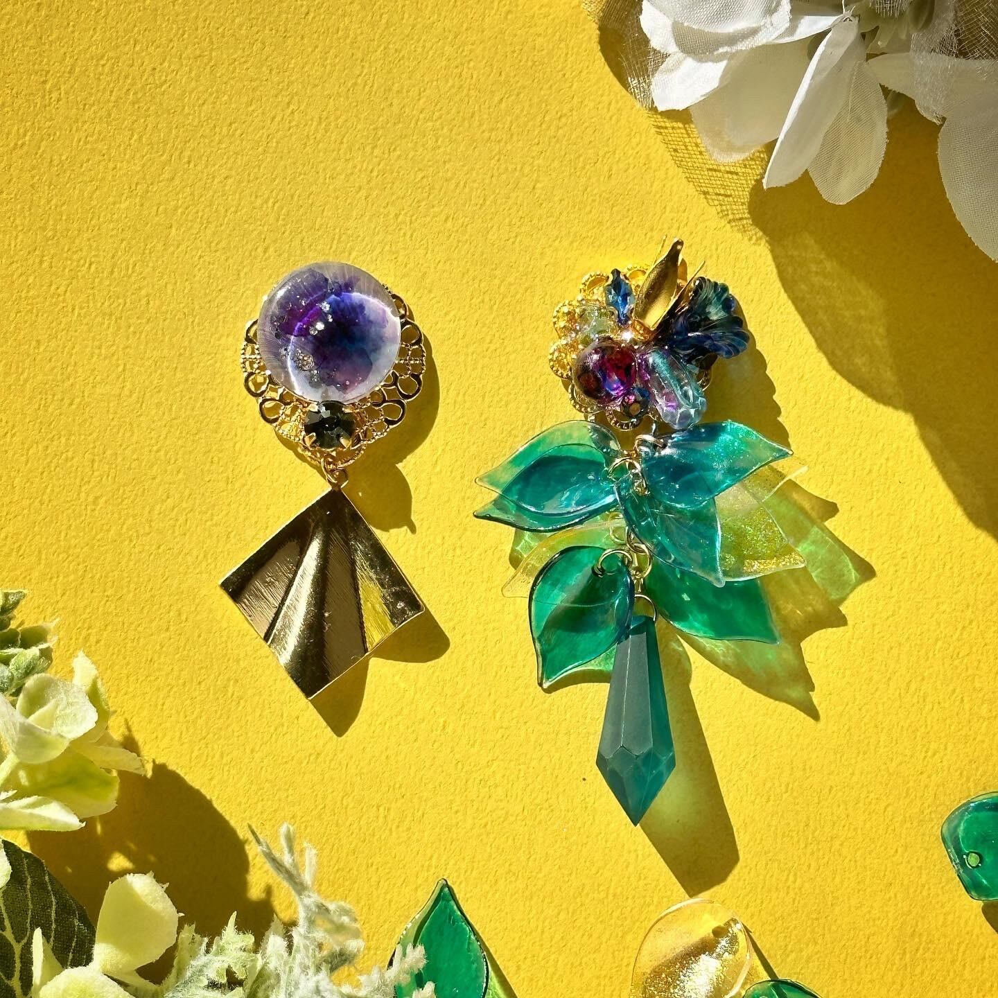 イヤリング・ピアスどちらでも対応しておりますので、ご購入時どちらかを必ずお選びください。