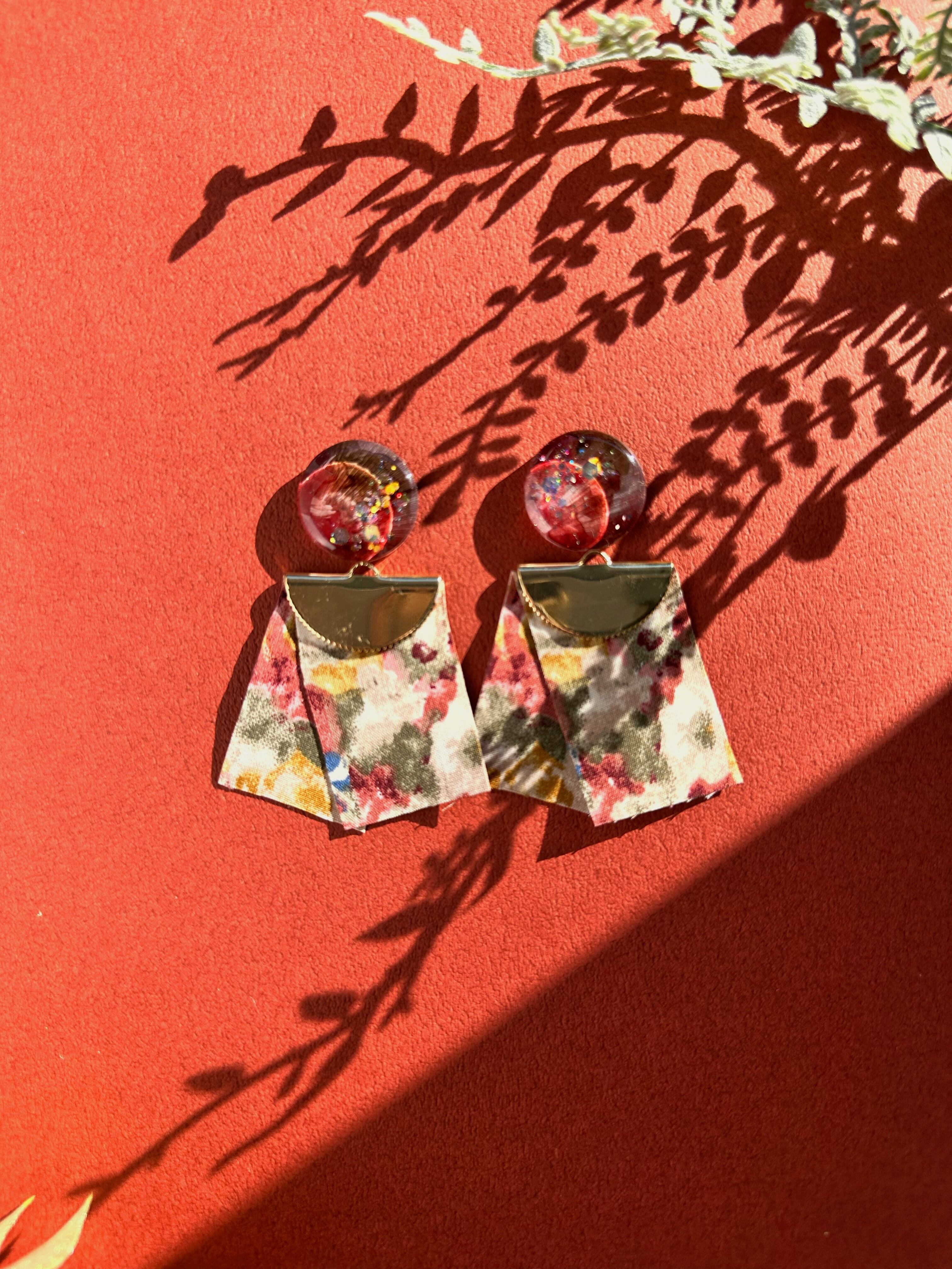 水彩画のような淡くて優しい色の重なりが美しいリボンをチャームとして使い、ちょっとしたアクセサリーを作りました。
