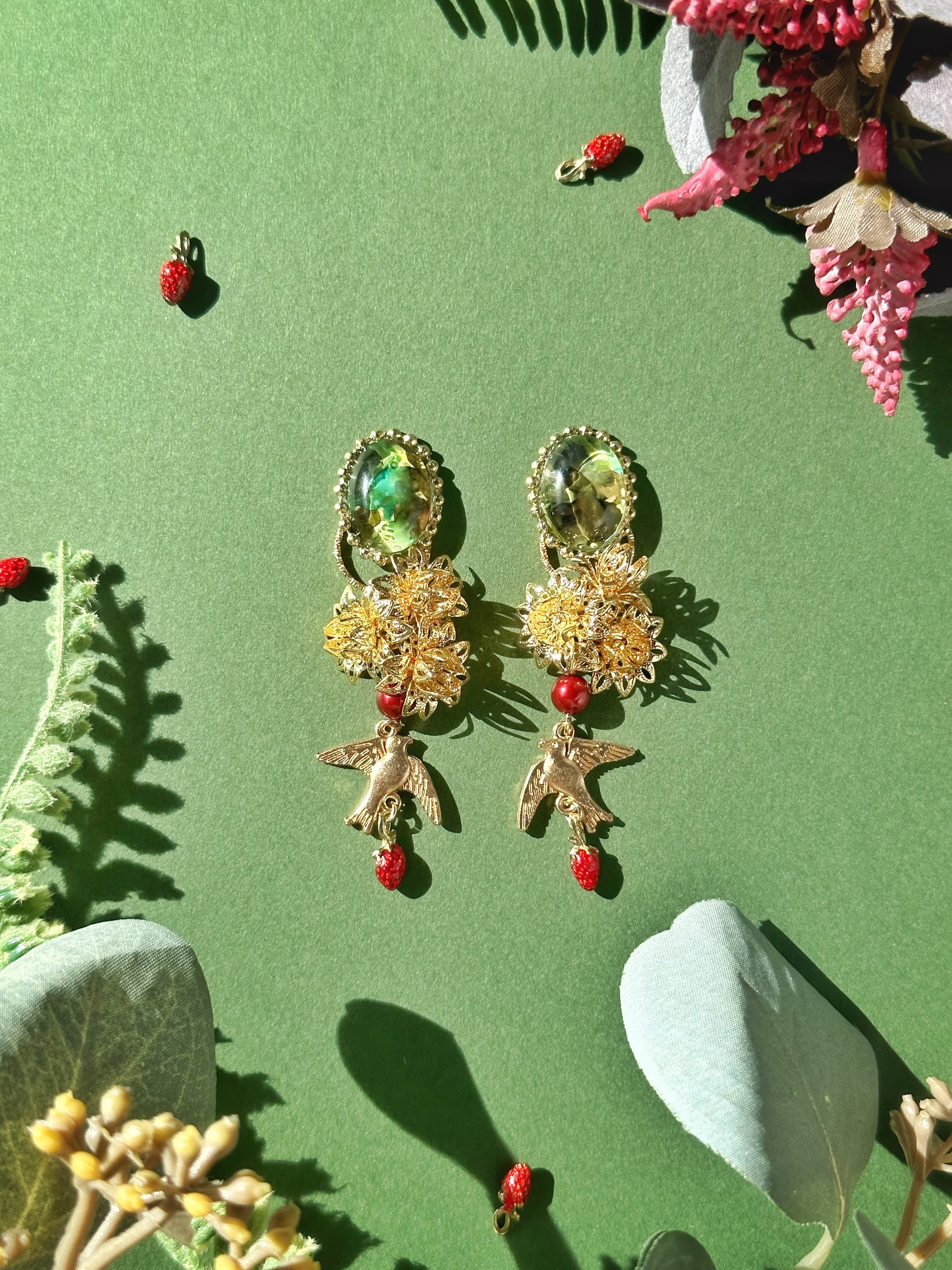 ウィリアム・モリスの「いちご泥棒」をモチーフにしたイヤリング・ピアスです。