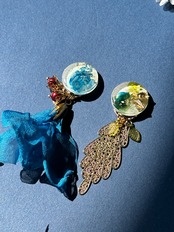 彼女のたゆたう水の鮮やかな青とその体をまとう植物の色をアクセサリーに落とし込んでいます。