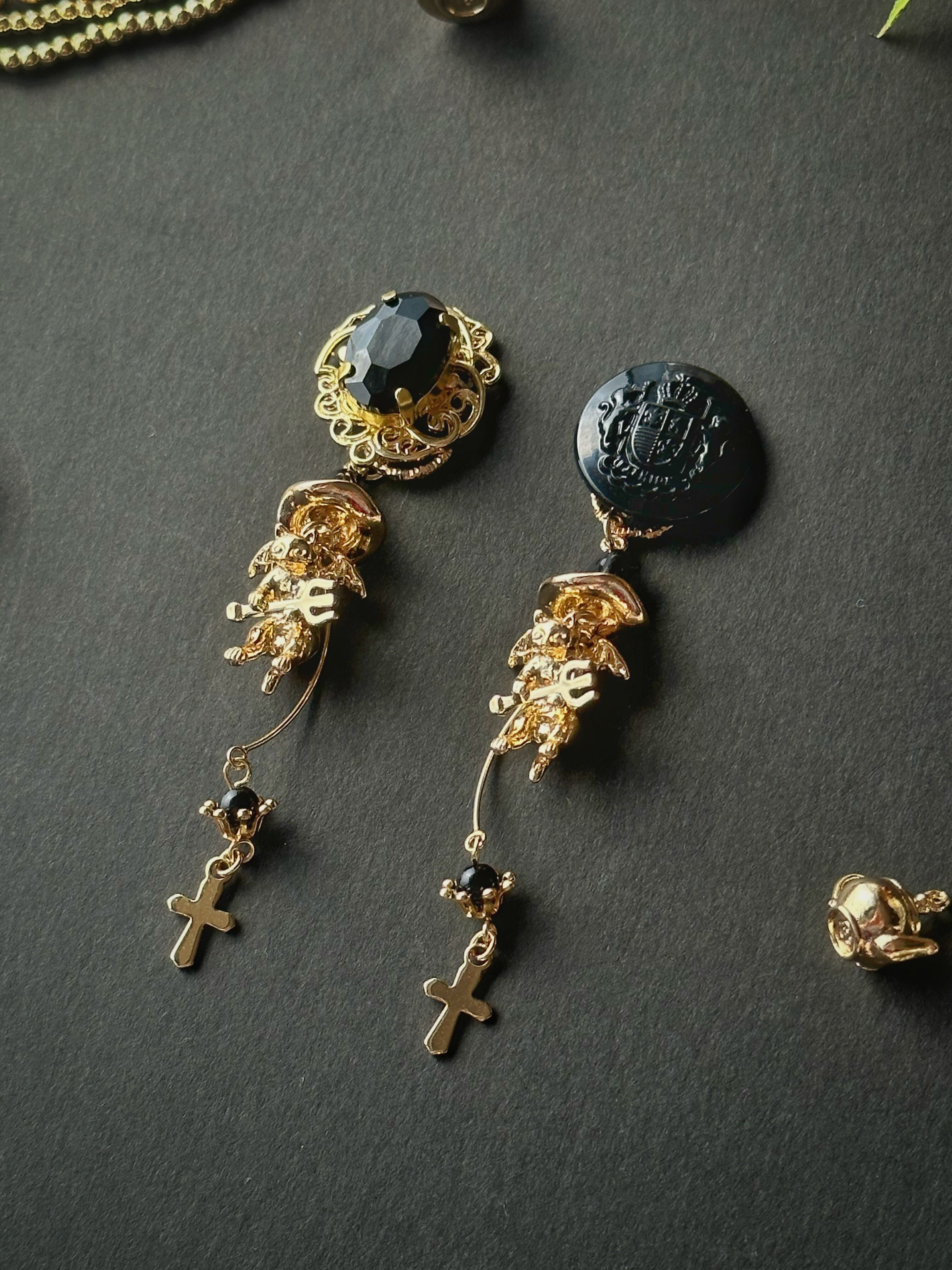 翼と槍を持ったデビル猫さんのチャームがかわいいアクセサリーの登場です。