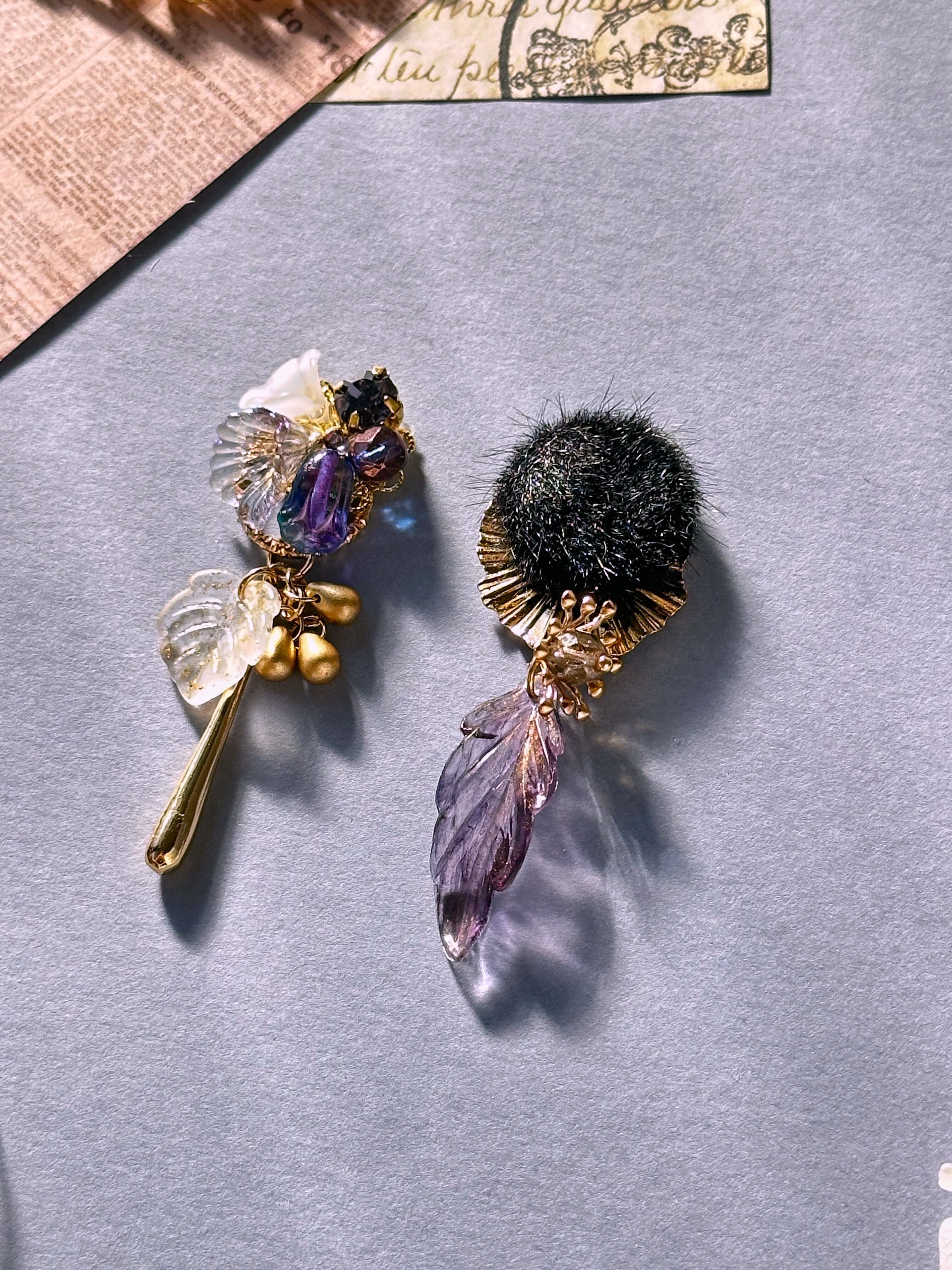 華やかでありながら、どこか少し蠱惑的な雰囲気を全体にまとうアクセサリーに仕上げています。