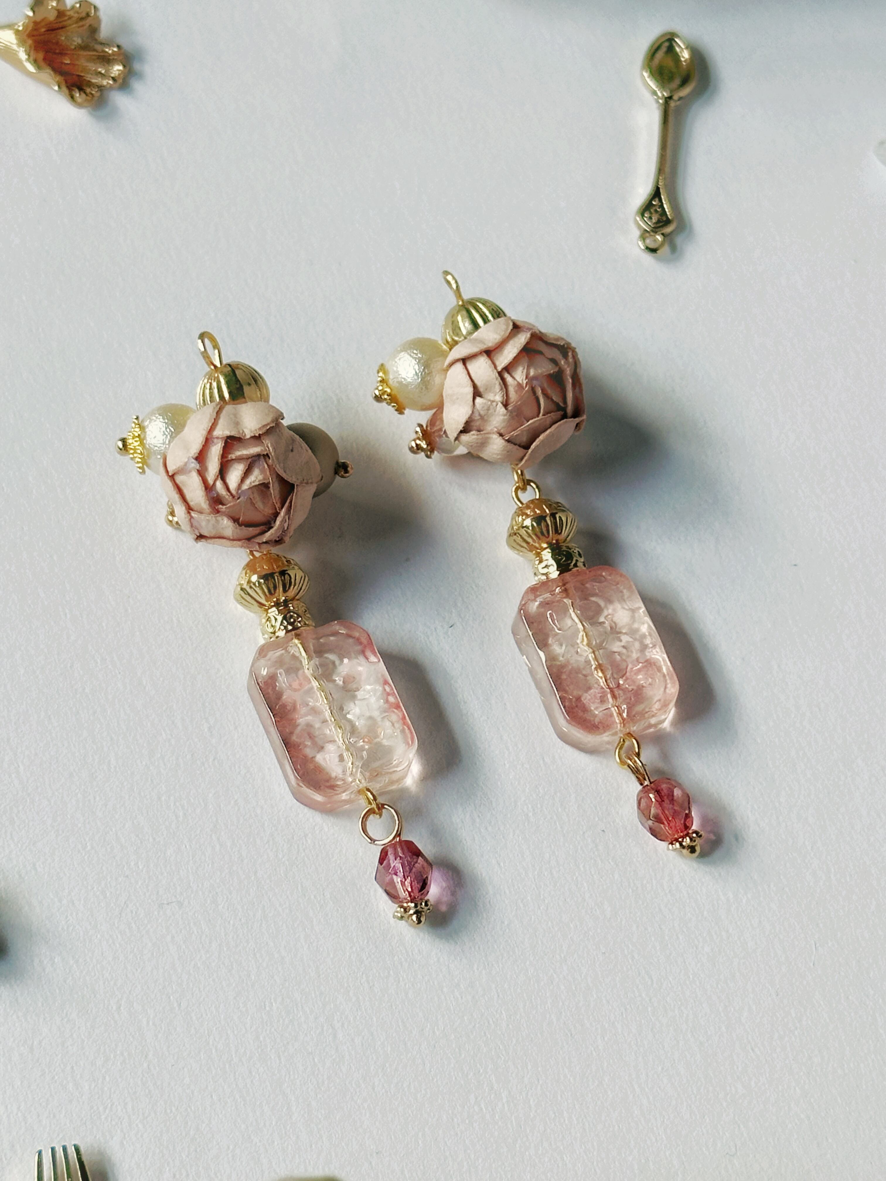 【名画モチーフ】 エリザベト=ルイーズ・ヴィジェ=ルブラン『薔薇を持つマリー=アントワネット(ピンク)』イヤリング・ピアス
