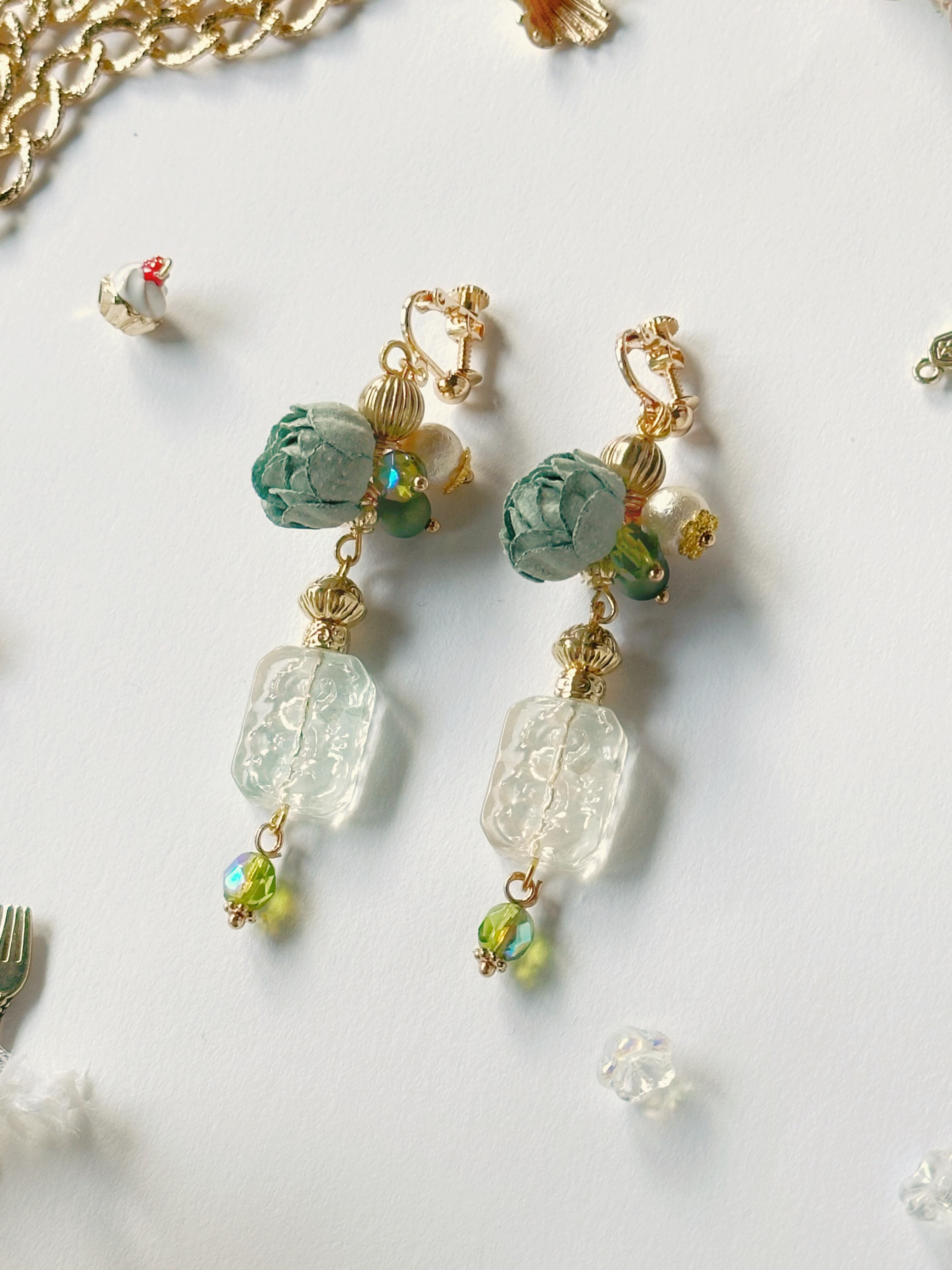 【名画モチーフ】 エリザベト=ルイーズ・ヴィジェ=ルブラン『薔薇を持つマリー=アントワネット(グリーン)』イヤリング・ピアス