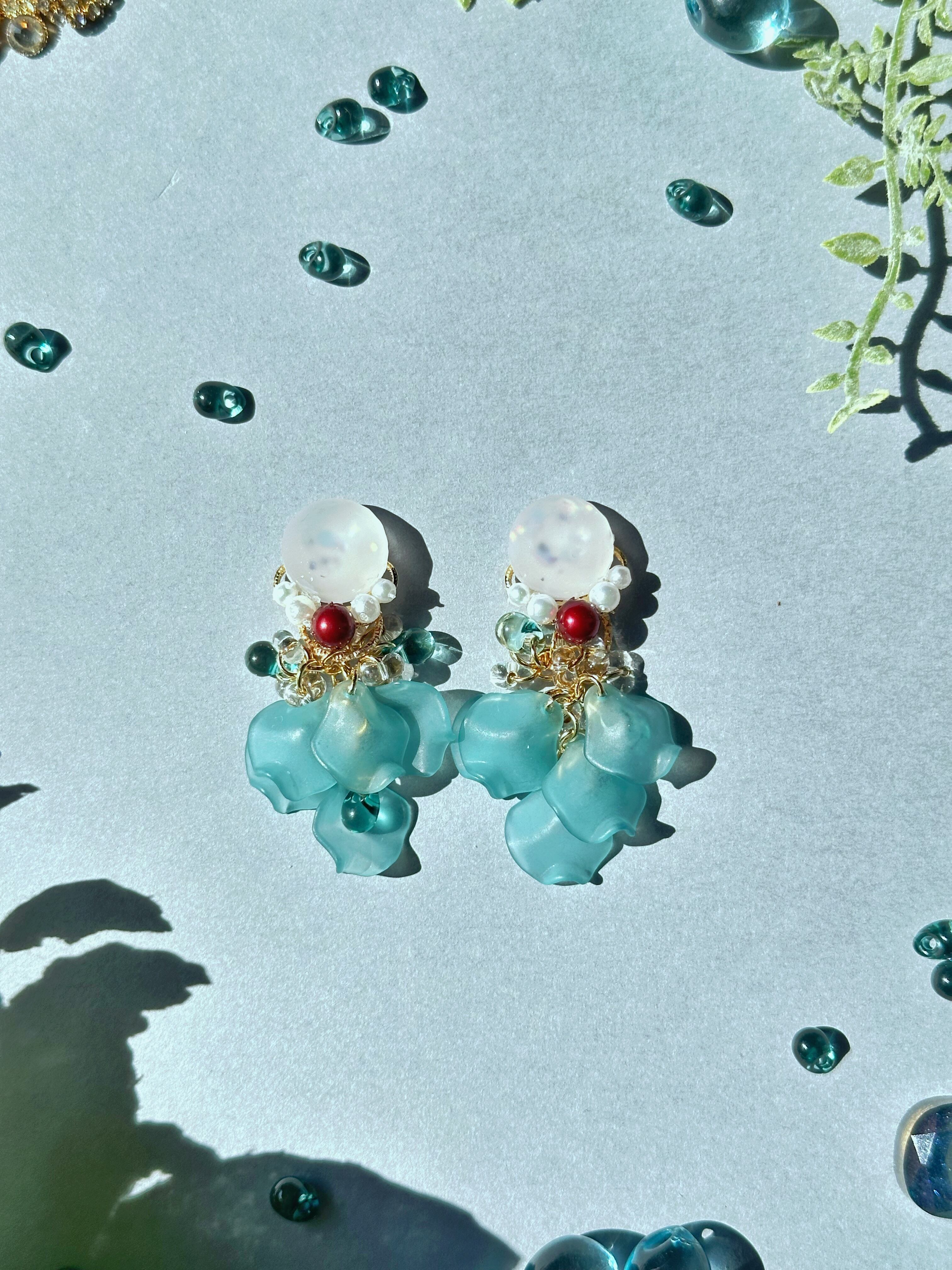 夏になると飲みたくなるあのクリームソーダをイメージしてアクセサリーを作りました。ピアス・イヤリングどちらでも対応可能です。