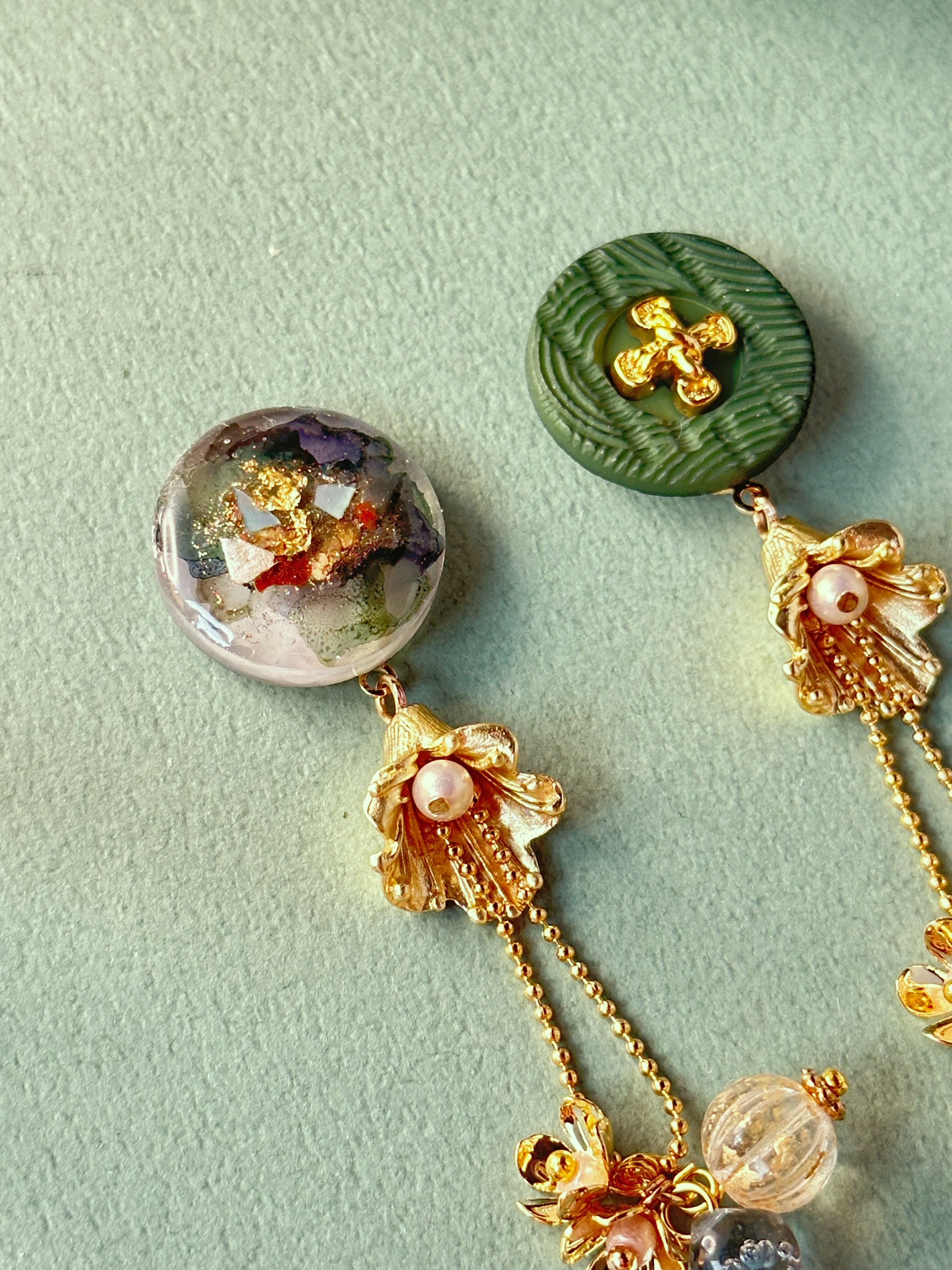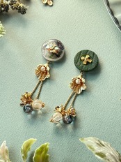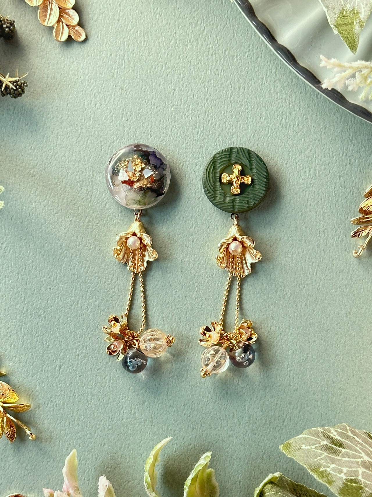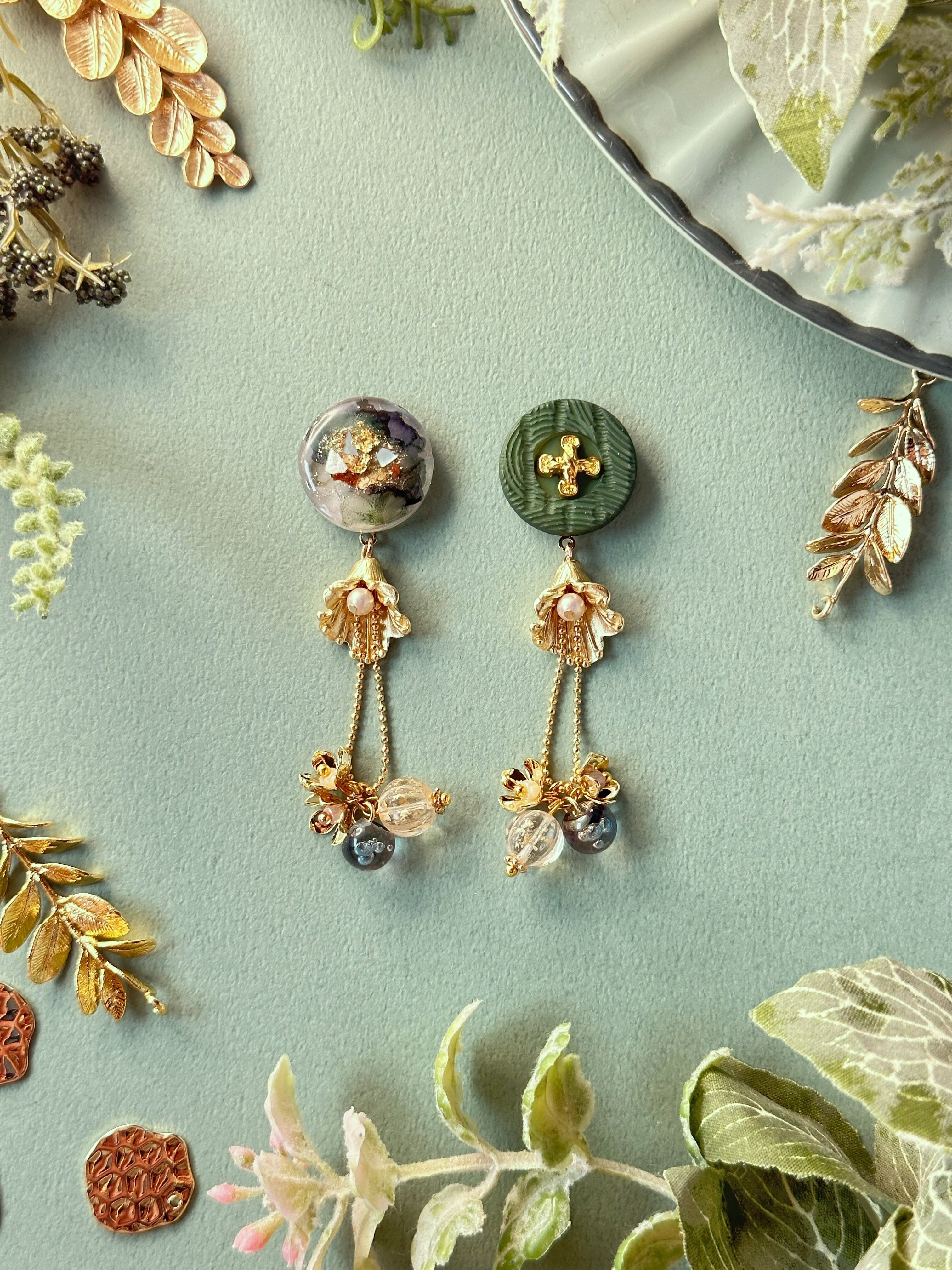 【1way】「Flowers on the green」アシンメトリー イヤリング・ピアス