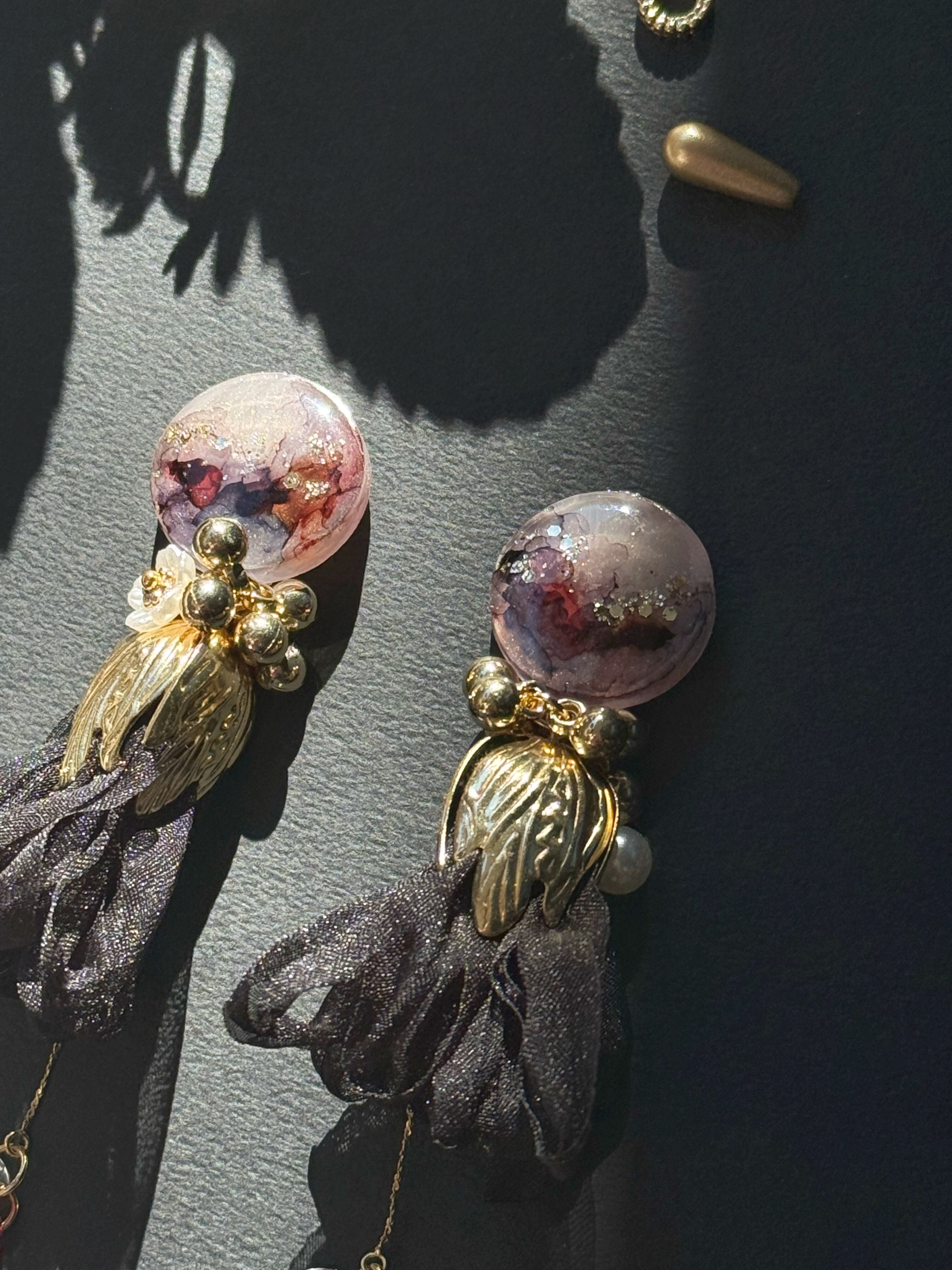 そのため、アクセサリー全体を黒づくめにするのは避けました。カボションに白いところが残るのはその辺りを意識しています。
