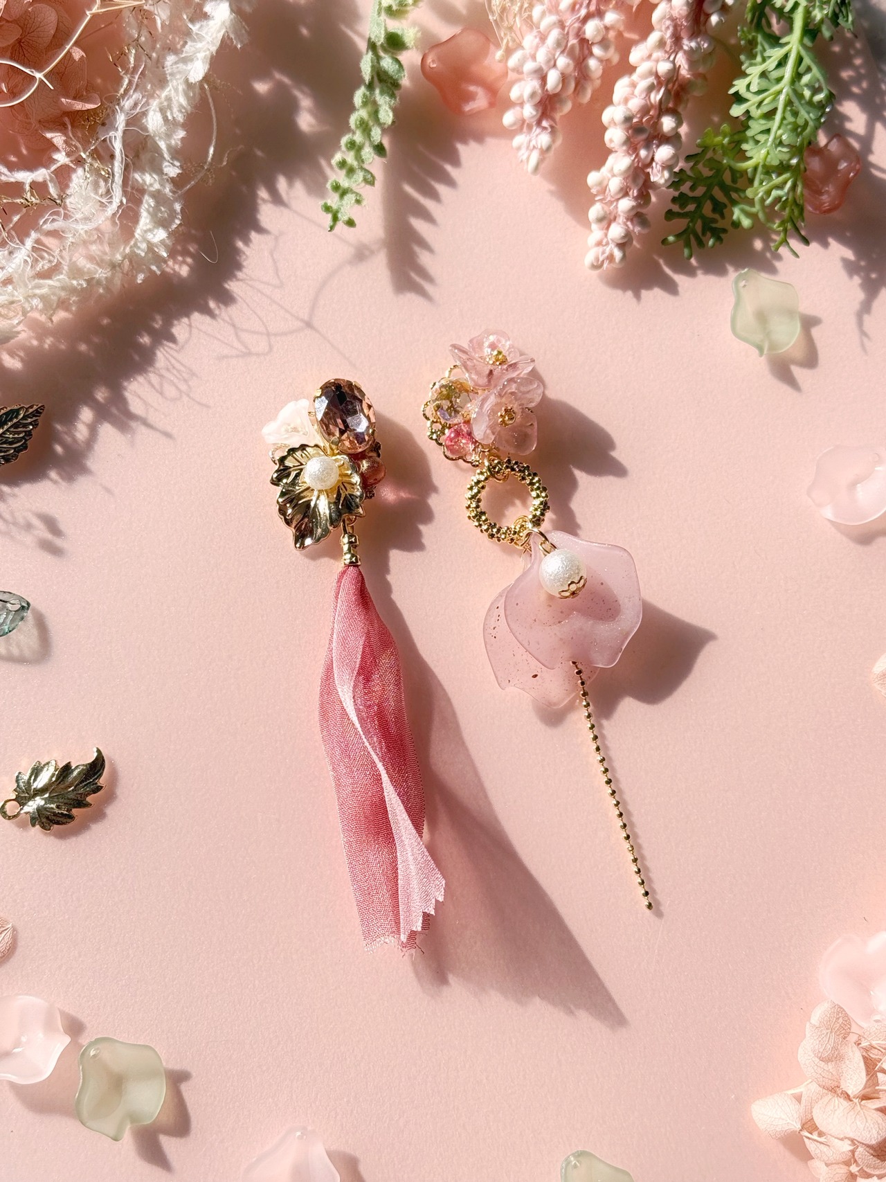 ピンク色で全体を纏めた作品ですが、色味はやや落ち着いた赤みを帯びたピンクを使用し、ゴールドパーツと組み合わせることでシックな大人の気高さ、美しさを感じられるテイストに仕上げています。